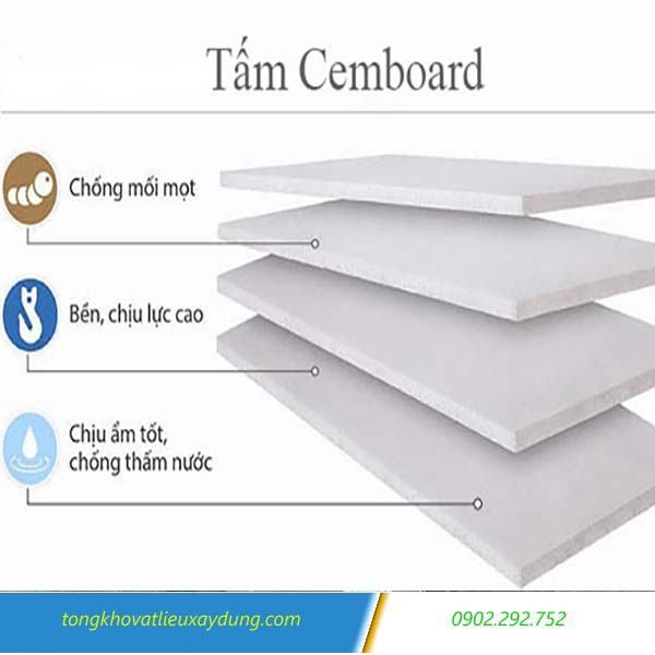 - Tấm Cemboard lót sàn dày 12mm, 14mm, 15mm, 16mm, 18mm, 20mm: Làm lót sàn gác, sàn giả đúc, gác lửng, sàn nâng, sàn siêu nhẹ, sàn kỹ thuật. Làm nhà trọ, phòng cho thuê, nhà tiền chế, nhà xưởng, nhà lắp ghép với chịu lực tốt và tính thẩm mỹ cao.